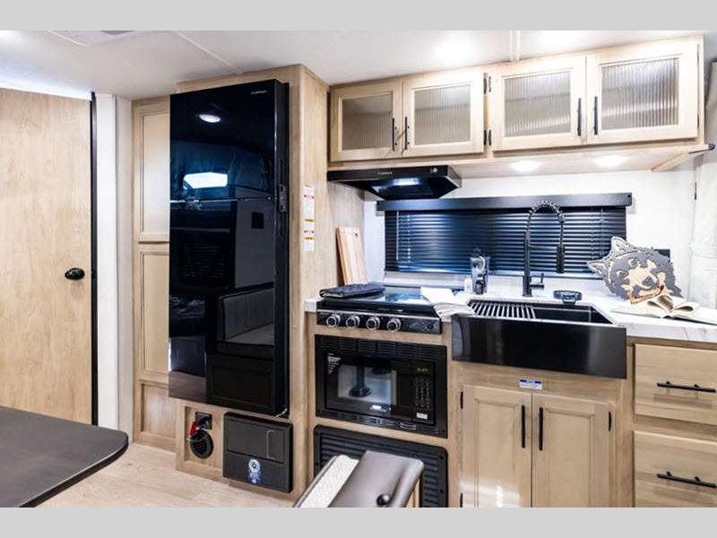 Sleeps 4 Length 25 ft 1 in Ext Width 8 ft Ext Height 10 ft 8 in Hitch Weight 579 lbs GVWR 7579 lbs Dry Weight 4665 lbs Cargo Capacity 2914 lbs Fresh Water Capacity 52 gals Grey Water Capacity 38 gals Black Water Capacity 28 gals Furnace BTU 20000 btu Available Beds RV King Refrigerator Type 12V Cooktop Burners 3 Number of Awnings 1 Water Heater Type Tankless AC BTU 15000 btu Awning Info 15' Full Length Power w/LED Light Strip Axle Count 2 Shower Type Tub/Shower Combo Solar Wattage 200 watts Similar Floorplans