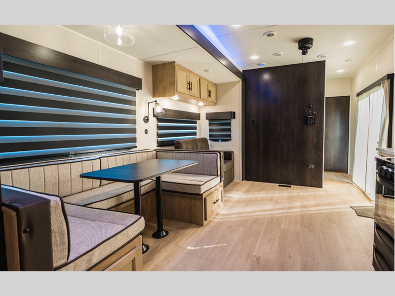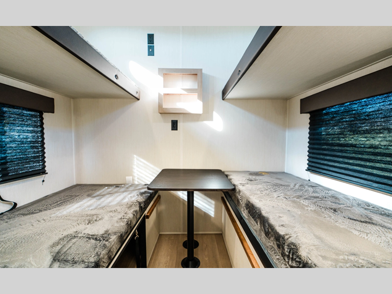 You will always find a comfortable place to relax with friends and family, cook with the full kitchen amenities, and clean up daily in the bathroom. There are also cozy sleeping spaces, plenty of storage options, and durable construction materials so you can enjoy your trailer for years to come!