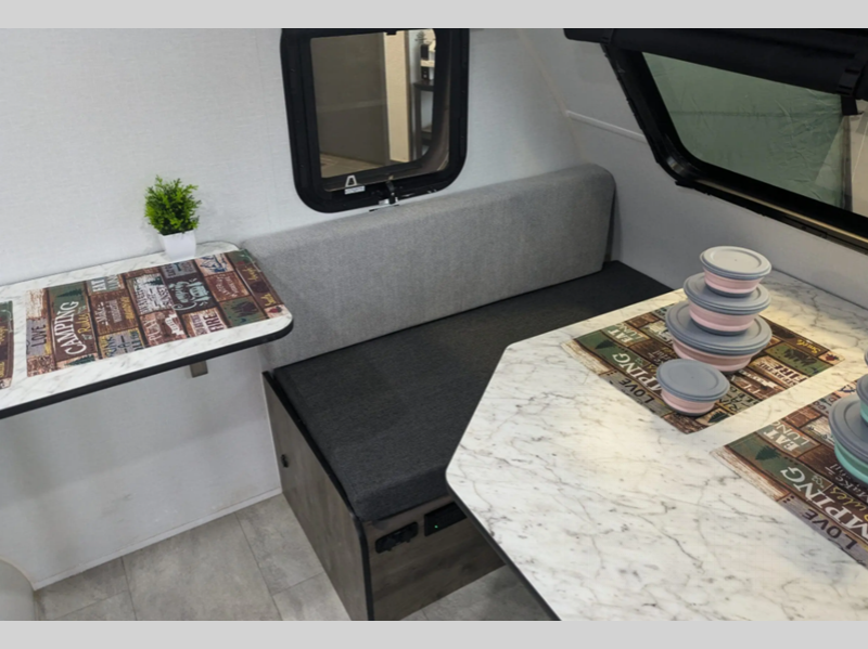 Sleeps 4 Length 14 ft 4 in Ext Width 6 ft 5 in Ext Height 7 ft 7 in Int Height 6 ft Hitch Weight 153 lbs Dry Weight 1235 lbs Fresh Water Capacity 15 gals Grey Water Capacity 15 gals Tire Size 13" Axle Count 1 -