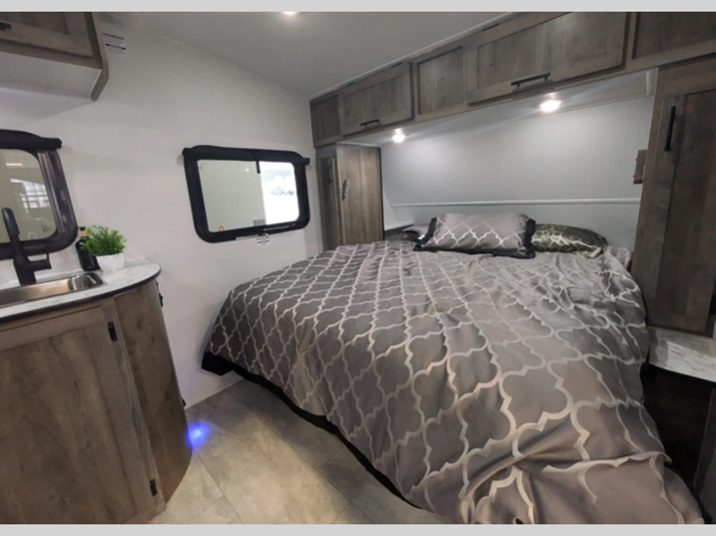 Sleeps 5 Slides 1 Length 21 ft 9 in Ext Width 6 ft 8 in Ext Height 8 ft 7 in Int Height 6 ft 8 in Hitch Weight 275 lbs Dry Weight 2980 lbs Fresh Water Capacity 27 gals Grey Water Capacity 25 gals Black Water Capacity 15 gals Tire Size 14" Furnace BTU 20000 btu Available Beds Queen Axle Count 2 Number of LP Tanks 2 Shower Type Wet/Bath Shower Similar Floorplans