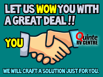 Quinte RV Centre reserves the right to correct any misprints, typos, or errors in editing or calculating found in our website pages. Availability and pricing can change quickly and with little notice. Sample payments listed are typically 'all-inclusive' of any relevant fees or taxes. Prices listed typically are plus tax and any relevant fees. Manufacturer pictures, specifications, and features may be used in place of actual units on our lot. Please contact us @613-392-3288 for availability as our inventory changes rapidly. All calculated payments are an estimate only and do not constitute a commitment that financing or a specific interest rate or term is available.